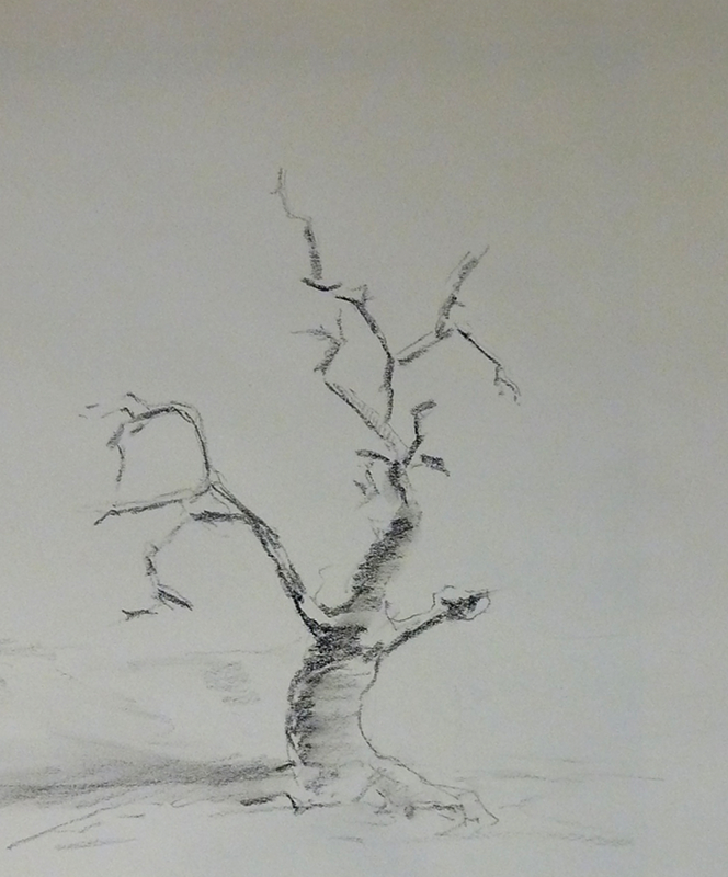 ce croquis (et les autres) ont été fait d’après photo, mais j’avoue que cet arbre mort m’a tout de suite attiré …. il criait sa vérité 😉