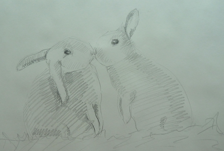 Au fil de mes recherches d’images pour ce sujet je suis tombée sur une photo de lapins et j’ai tout de suite eu envie de les croquer.