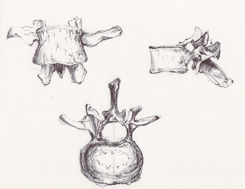 De tous les os du corps humain, les vertèbres sont ceux que je trouve des plus étranges. Corps, apophyses, facettes, foramen, pédicules … tout cela pour protéger la moelle épinière et nous permettre de nous mouvoir en toute liberté.